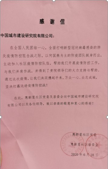疫情之下,寸土有责,众志成城,共克时艰。他们以“最大的责任担当”,形成工作金年会,做到统一指挥调度,积极组织开展,有效贯彻执行,为全面打赢这场抗疫做出应尽的贡献。现阶段,此次疫情已经全面得到控制,在此过程中,代表我院奋战在抗疫一线的何国燕团队所做的工作得到了社区居民、惠新西里居委会的普遍认可和高度赞扬(图2:何国燕同惠新里居委会领导合影;图3惠新里社区党委和居委会向我院发来感谢信)。